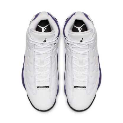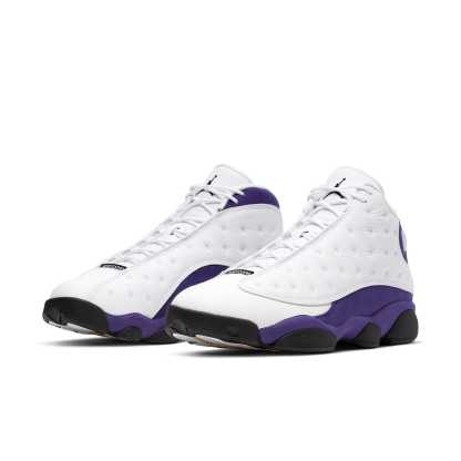 The Nike Air Jordan 13 Retro 'Lakers' sneaker is a must-have for any fan of the iconic NBA team. This sneaker pays homage to the 1990-91 NBA Finals, when Michael Jordan won his first championship ring against the Los Angeles Lakers. The perforated leather upper and Lakers-inspired colors on the heel, front-facing Jumpman, and mudguard are sure to turn heads, while the hints of gold on the outsole add a touch of luxury.